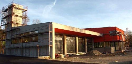 5. Jänner 2012: Das neue Zeughaus der FF am Thalbach an der Bundesstraße 138 in Bergerndorf steht vor der Fertigstellung.
